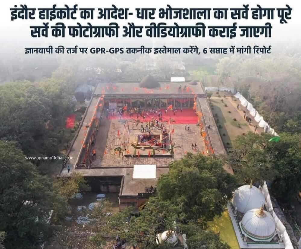 माननीय उच्च न्यायालय इंदौर ने भारतीय पुरातत्व विभाग को माँ सरस्वती मंदिर, भोजशाला के वैज्ञानिक सर्वेक्षण के आदेश दिए। जिसको लेकर हिन्दू समाज की बड़ी जीत माना जा रहा है।…