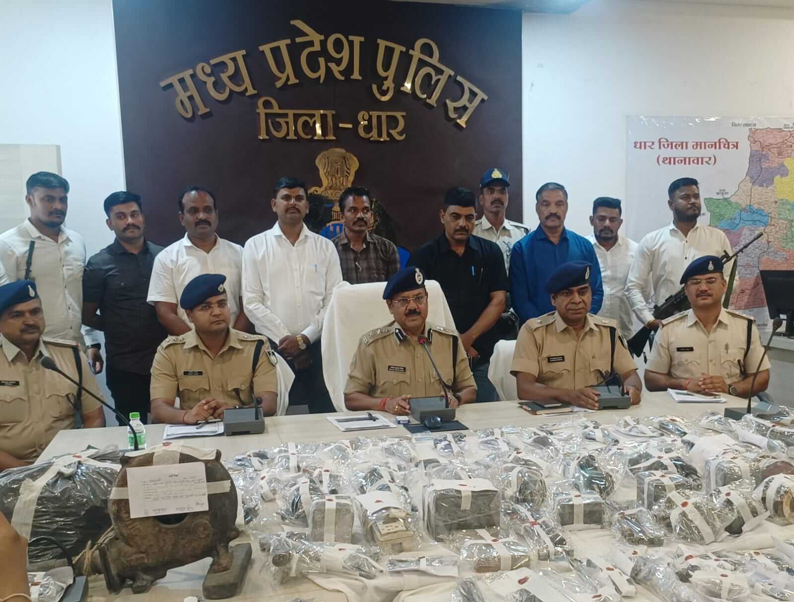 धार पुलिस की टीम द्वारा आरोपियो के कब्जे से 22 अवैध देशी 12 बोर के कट्टे, अवैध फायर आर्म्स निर्माण का कारखाना उपकरण कुल मश्रुका कीमती 3,10,000/- रुपये को जप्त…