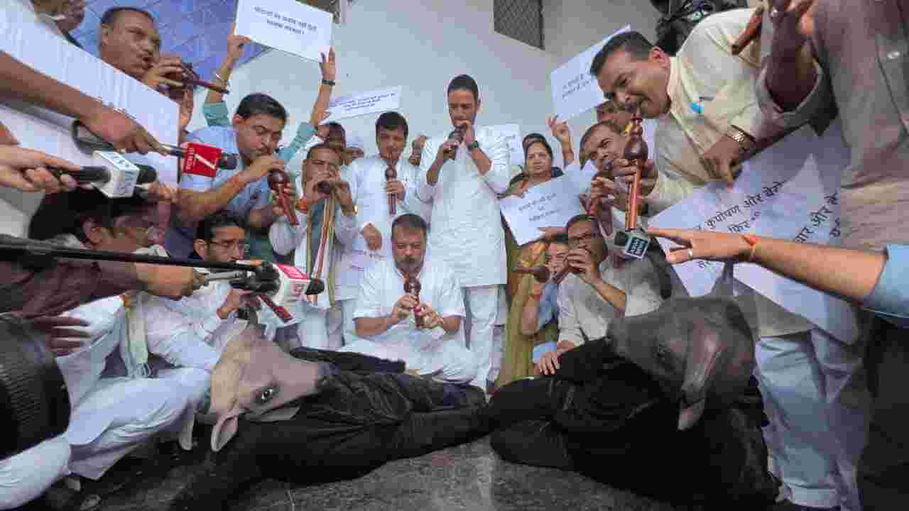 भोपाल। विधानसभा सत्र के दूसरे दिन नेता प्रतिपक्ष उमंग सिंघार के नेतृत्व में कांग्रेस विधायकों ने भैंस के आगे बीन बजाने का प्रतीकात्मक विरोध प्रदर्शन किया। मध्यप्रदेश विधानसभा सत्र के…